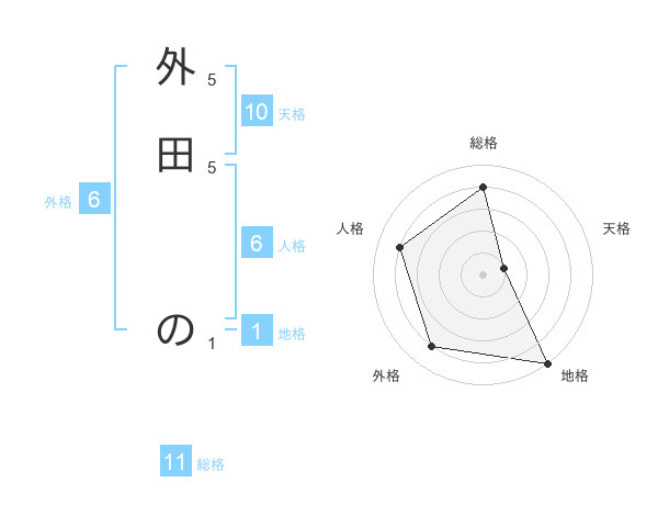 外田 のさんの総格は11画の4点!