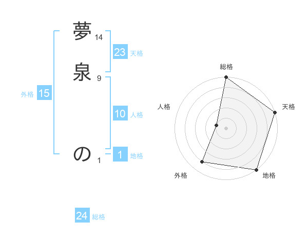 夢泉 のさんの天格は23画の5点!