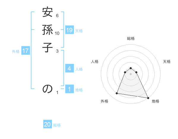 安孫子 のさんの総格は20画の1点!
