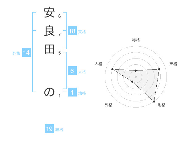 安良田 のさんの地格は1画の5点!