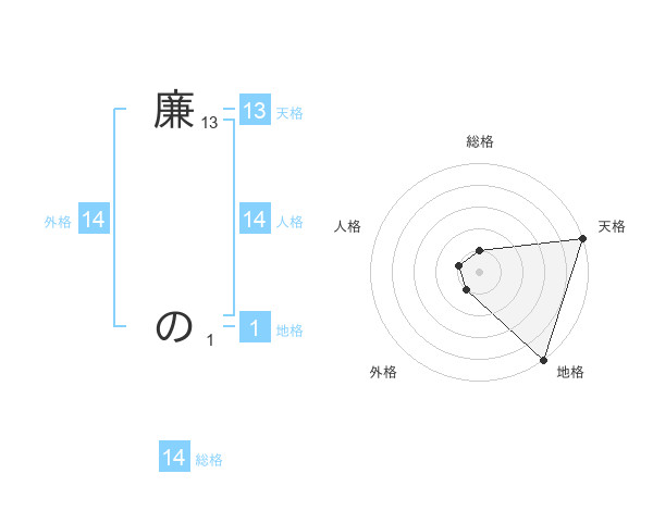 廉 のさんの天格は13画の5点!
