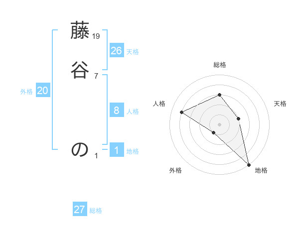 藤谷 のさんの総格は27画の3点!