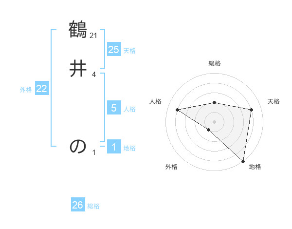 鶴井 のさんの総格は26画の2点!