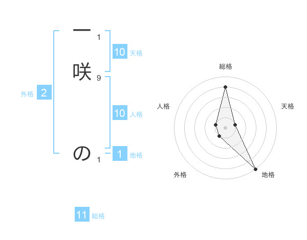 一咲 のさんの総格は11画の4点!