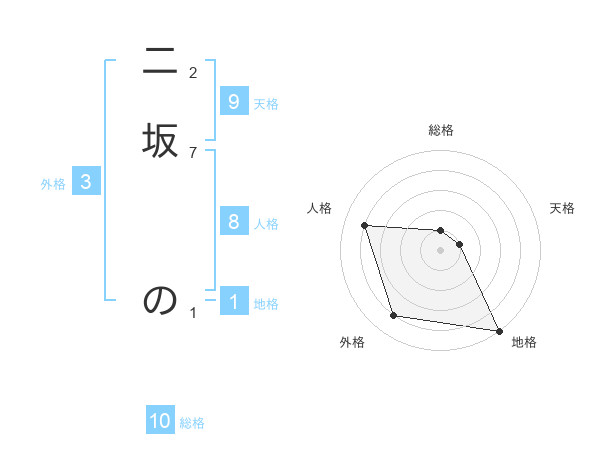 二坂 のさんの地格は1画の5点!