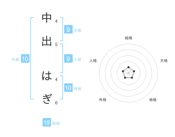中出 はぎさんの総格は19画の1点!