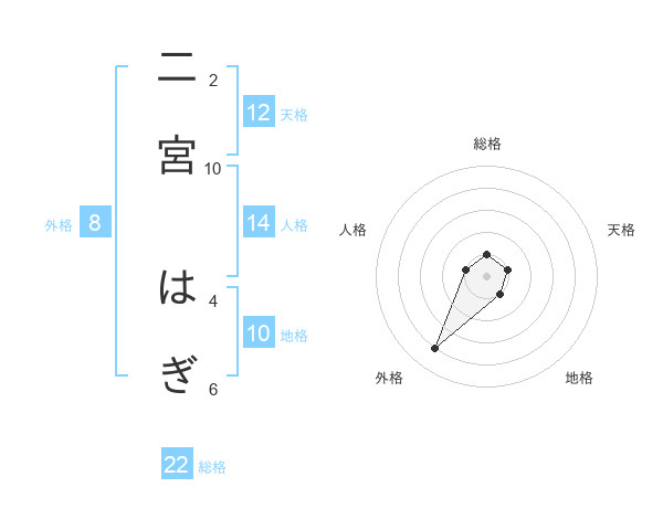 二宮 はぎさんを姓名の画数から五運を鑑定