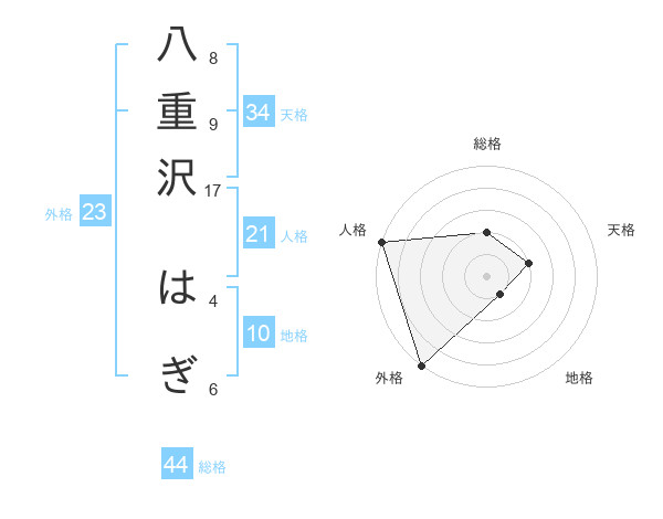 八重沢 はぎさんを姓名の画数から五運を鑑定