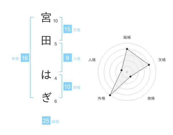 宮田 はぎさんの地格は10画の1点!