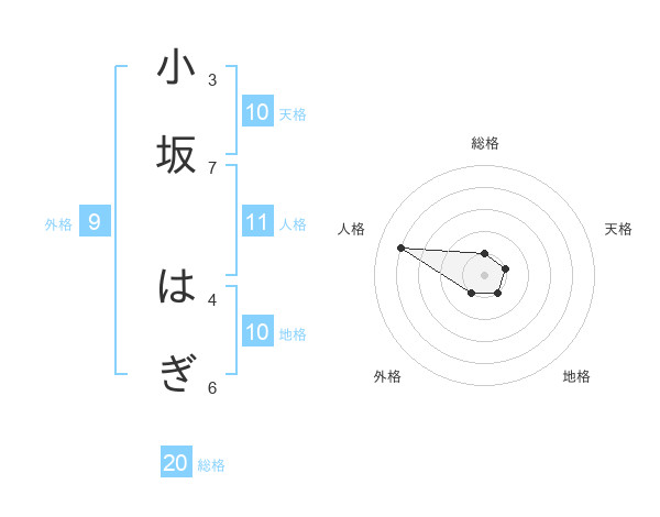 小坂 はぎさんの総格は20画の1点!