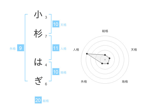 小杉 はぎさんの総格は20画の1点!