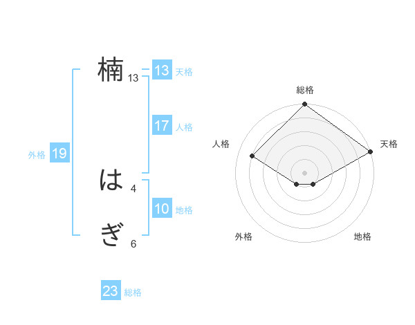 楠 はぎさんの天格は13画の5点!