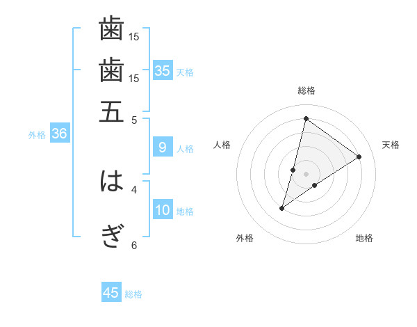 歯歯五 はぎさんの総格は45画の4点!