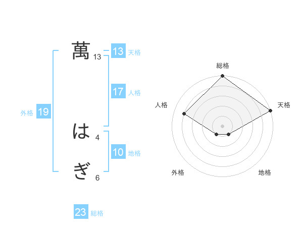 萬 はぎさんの天格は13画の5点!