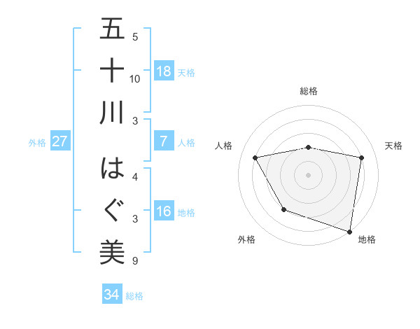 五十川 はぐ美さんを姓名の画数から五運を鑑定