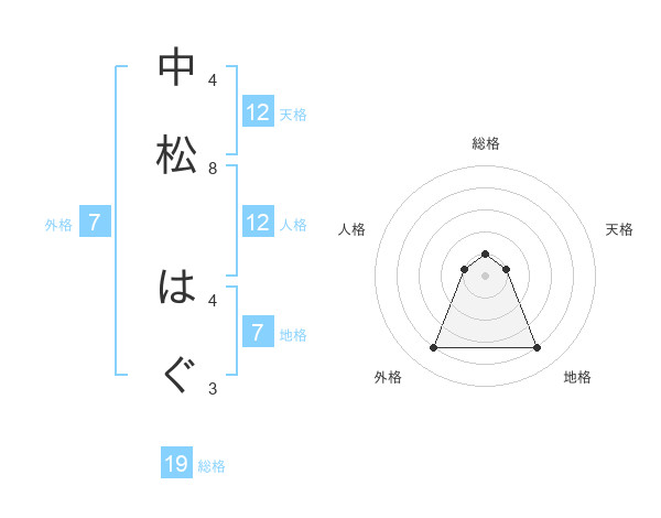中松 はぐさんの天格は12画の1点!