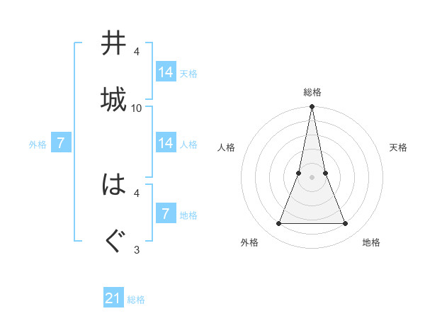 井城 はぐさんの総格は21画の5点!