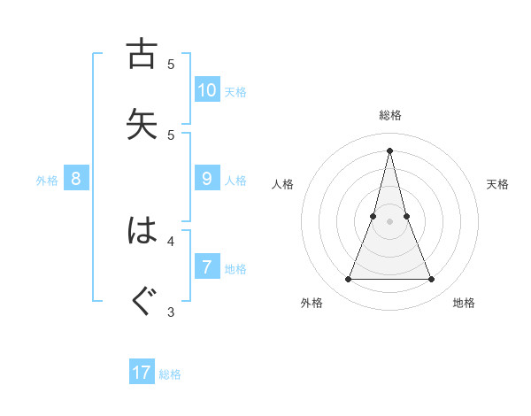 古矢 はぐさんの総格は17画の4点!