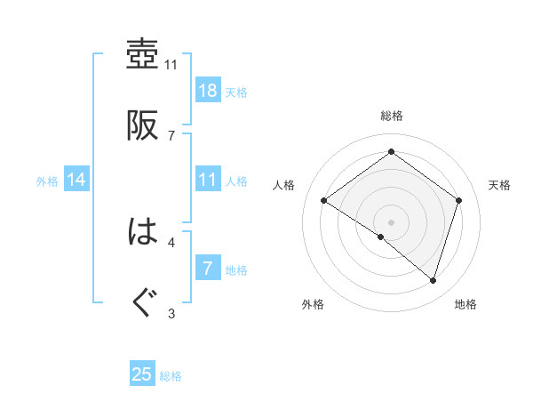 壺阪 はぐさんの総格は25画の4点!