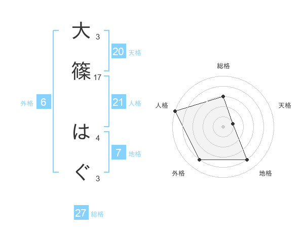 大篠 はぐさんを姓名の画数から五運を鑑定