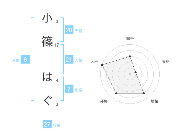 小篠 はぐさんの総格は27画の3点!