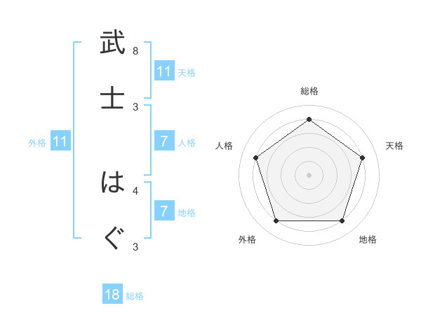 武士 はぐさんの天格は11画の4点!