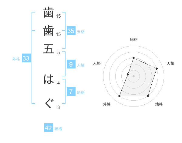 歯歯五 はぐさんを姓名の画数から五運を鑑定