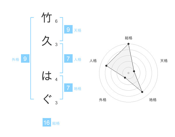 竹久 はぐさんを姓名の画数から五運を鑑定