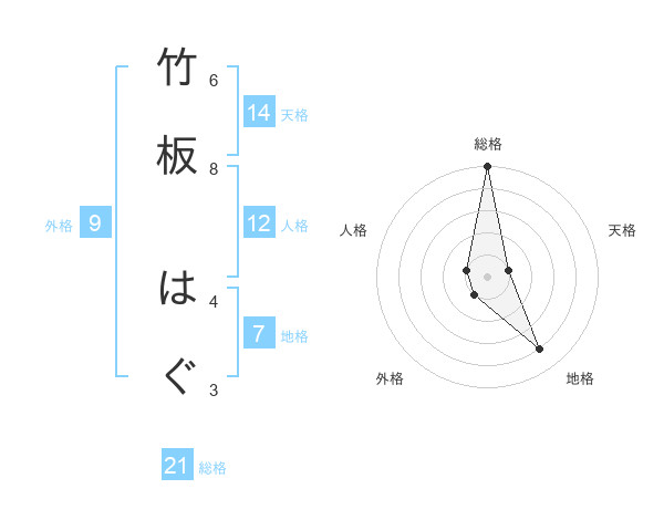 竹板 はぐさんの総格は21画の5点!