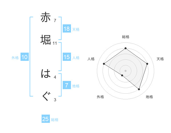 赤堀 はぐさんを姓名の画数から五運を鑑定
