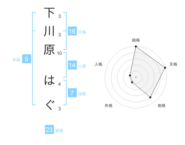 下川原 はぐさんの総格は23画の5点!