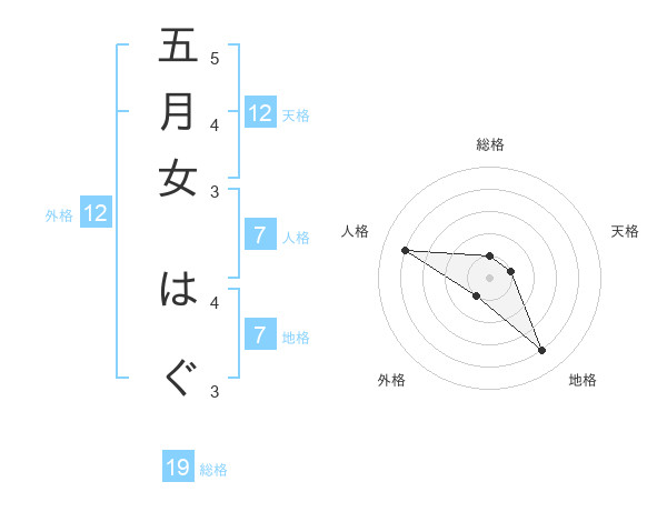 五月女 はぐさんの総格は19画の1点