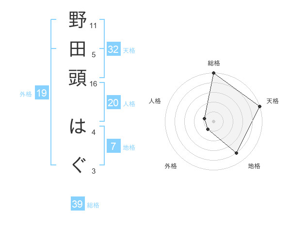 野田頭 はぐさんを姓名の画数から五運を鑑定