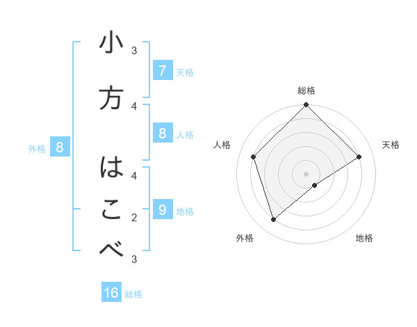 小方 はこべさんの総格は16画の5点