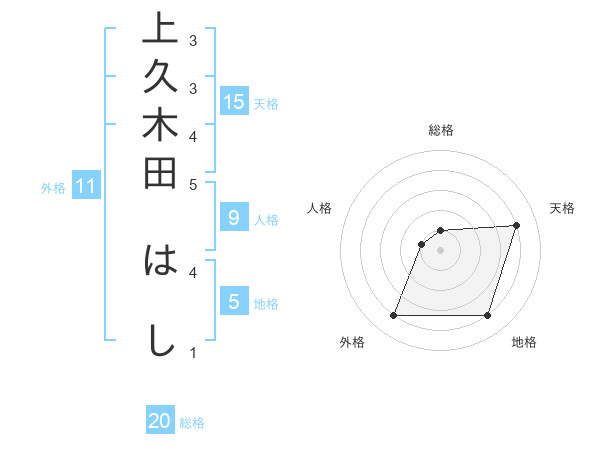 上久木田 はしさんを姓名の画数から五運を鑑定