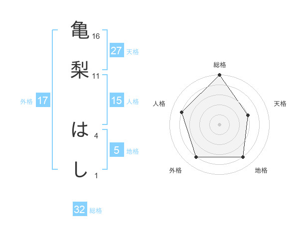 亀梨 はしさんを姓名の画数から五運を鑑定