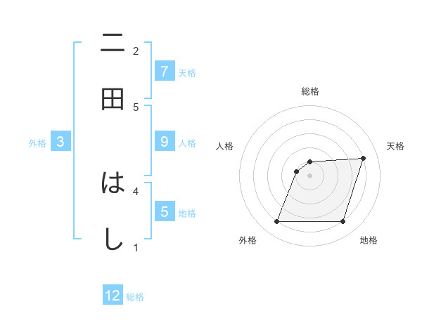 二田 はしさんの天格は7画の4点!
