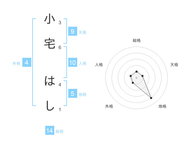 小宅 はしさんの総格は14画の1点!