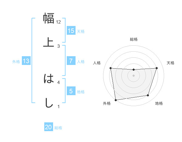 幅上 はしさんの総格は20画の1点!