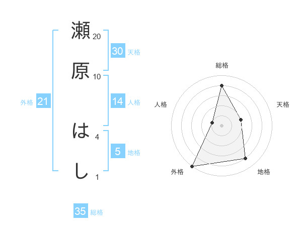 瀬原 はしさんを姓名の画数から五運を鑑定