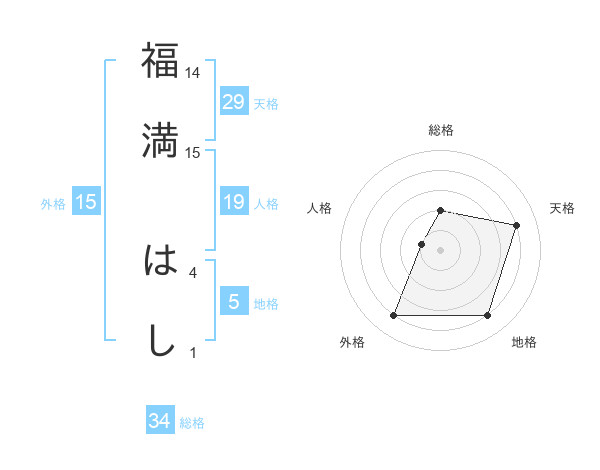 福満 はしさんの地格は5画の4点!