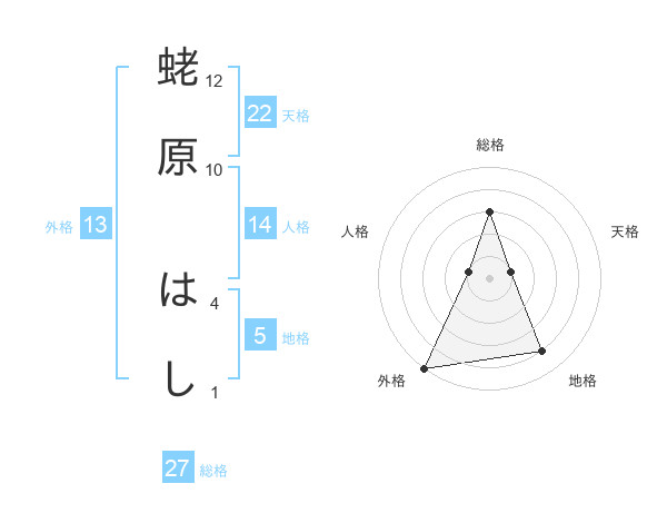 蛯原 はしさんの外格は13画の5点!