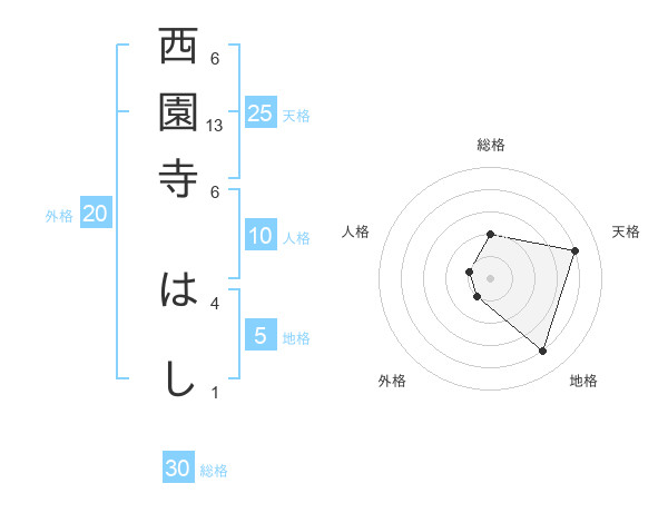 西園寺 はしさんの天格は25画の4点!