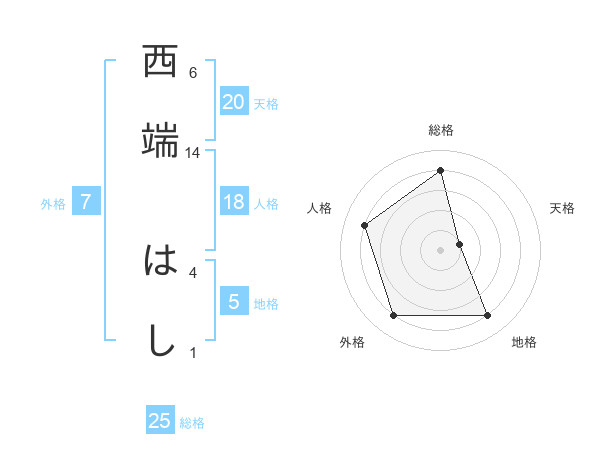 西端 はしさんの総格は25画の4点!