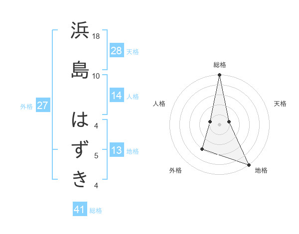 浜島 はずきさんの総格は41画の5点