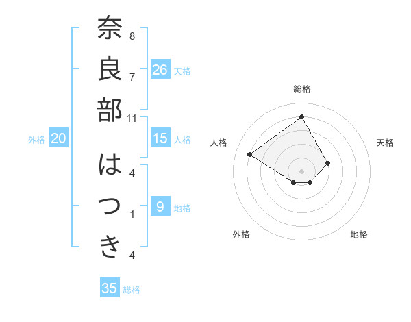 奈良部 はつきさんの総格は35画の4点!