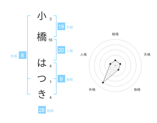 小橋 はつきさんを姓名の画数から五運を鑑定
