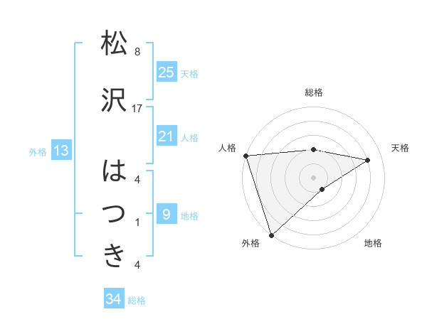 松沢 はつきさんの総格は34画の2点!