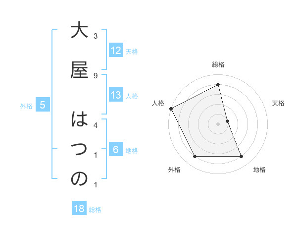 大屋 はつのさんを姓名の画数から五運を鑑定