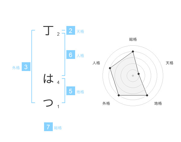 丁 はつさんの総格は7画の4点!